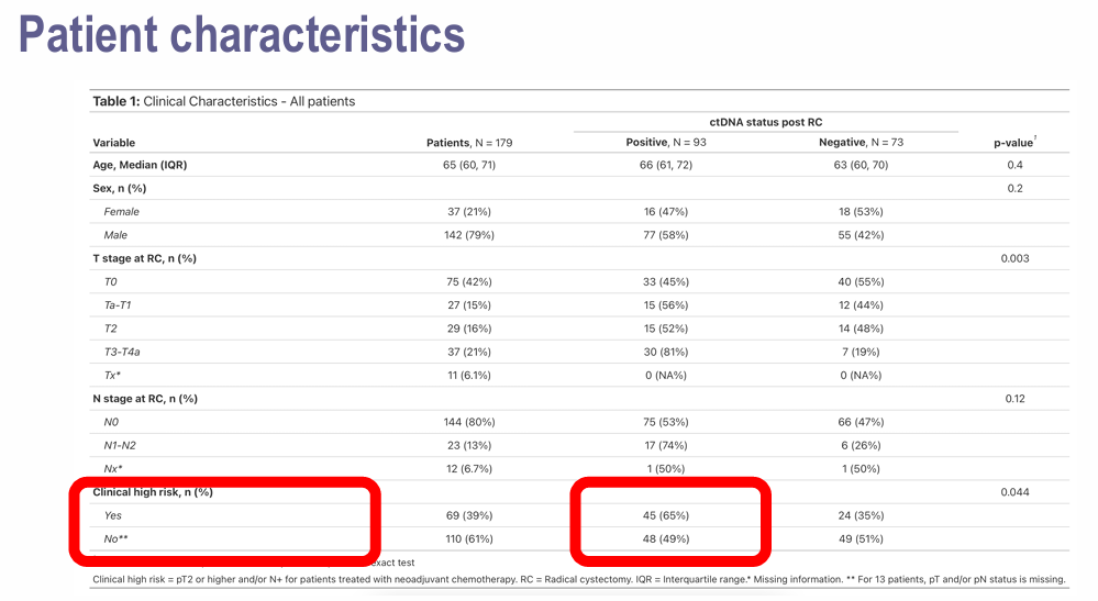 研究共分析了153名患者,ctDNA+和ctDNA-人群的组间特征如下。