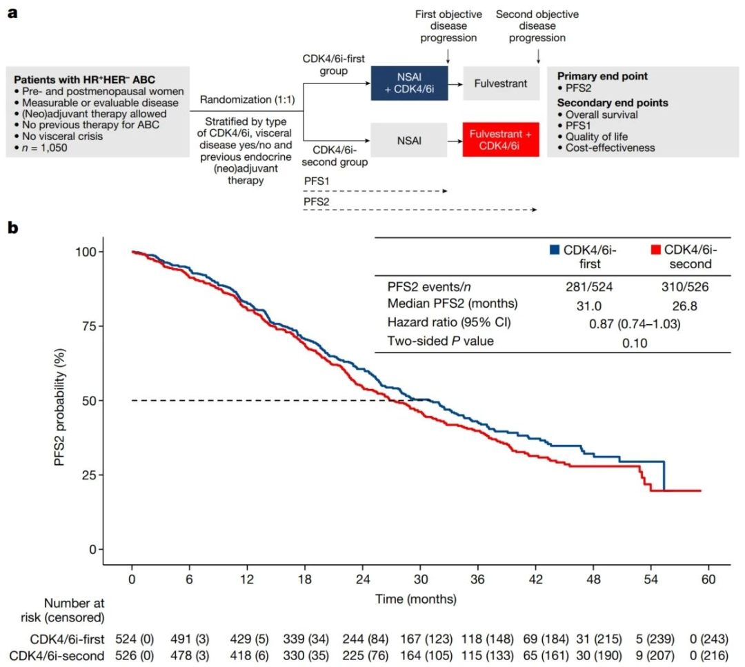 [6]Sonke GS,van Ommen-Nijhof A,Wortelboer N,et al.Early versus deferred use of CDK4/6 inhibitors in advanced breast cancer.Nature.2024;636(8042):474-480.doi:10.1038/s41586-024-08035-2