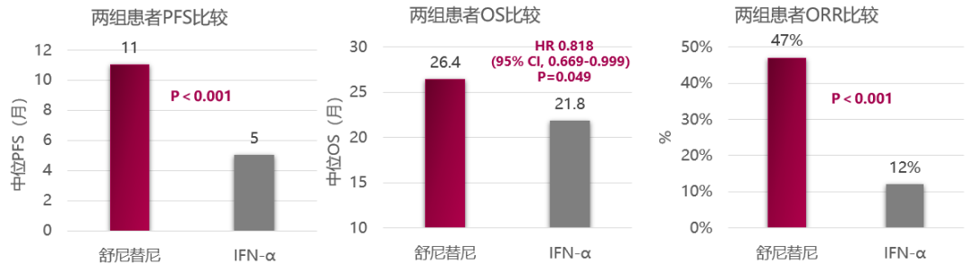 (舒尼替尼对比IFN-α一线治疗低危RCC患者的PFS、PS和ORR)