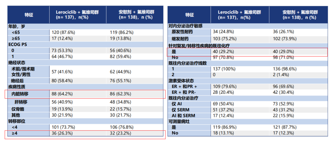 目前,该研究成果已发表在Nature Communications上。研究结果显示,两组基线特征均衡,其中来罗西利联合氟维司群组入组患者中64.2%存在内脏转移,40.9%伴肝转移,26.3%转移部位≥4个,75.2%对内分泌治疗继发耐药,充分反映了真实世界中的高危人群特征。