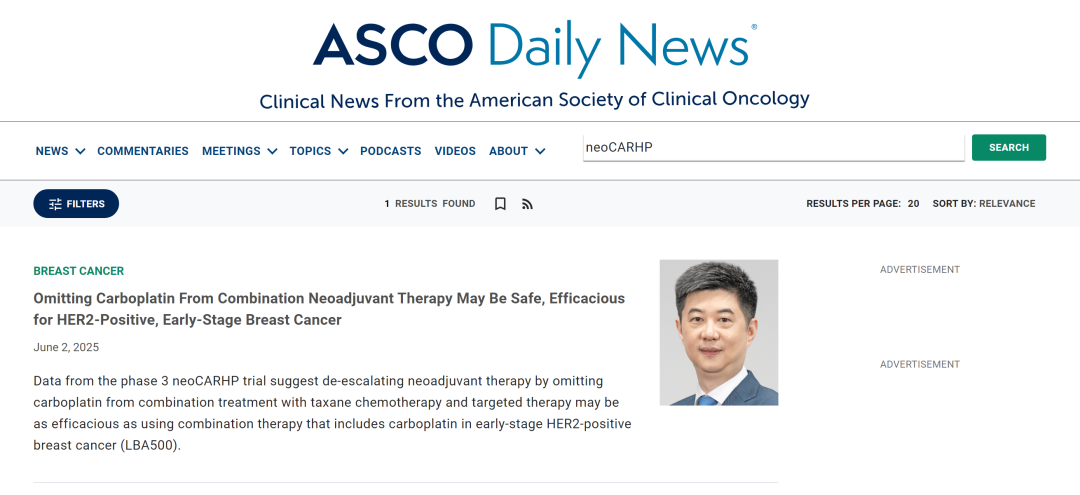 ASCO官网报道王坤教授团队neoCARHP研究,为双靶新辅助治疗提供“去卡铂”的降阶梯证据