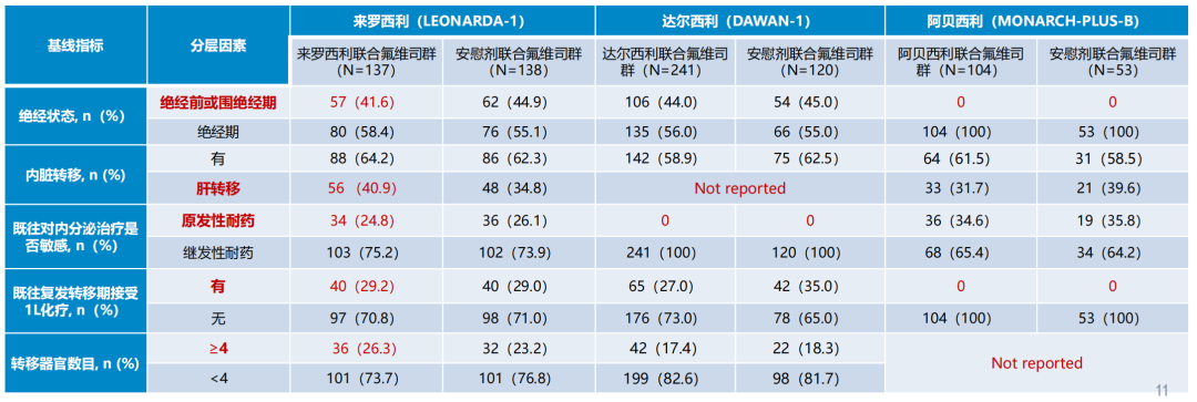 首先,入组患者非常宽泛,更加符合中国的临床实践,包含了晚期一线治疗或二线治疗(即早期和晚期ET进展的患者)、绝经前/围绝经期或绝经期、有或无化疗经治、有或无内脏转移、原发/继发耐药等不同的临床情况。