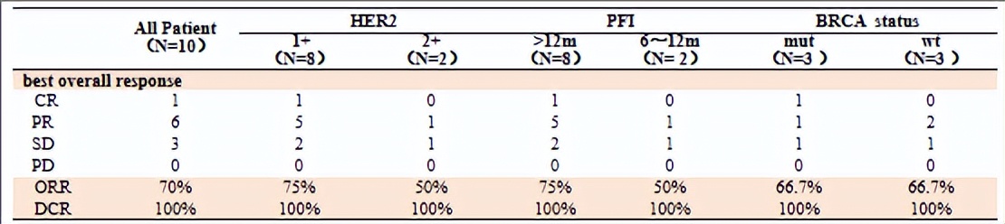 众所周知,高级别浆液性卵巢癌(HGSOC)是卵巢癌中侵袭性最强、复发率最高的亚型。Diversity研究纳入的患者中93%为HGSOC患者,其中一例HGSOC患者经治疗后实现CR,由此可见,DV联合方案在PSROC治疗中的疗效显著。