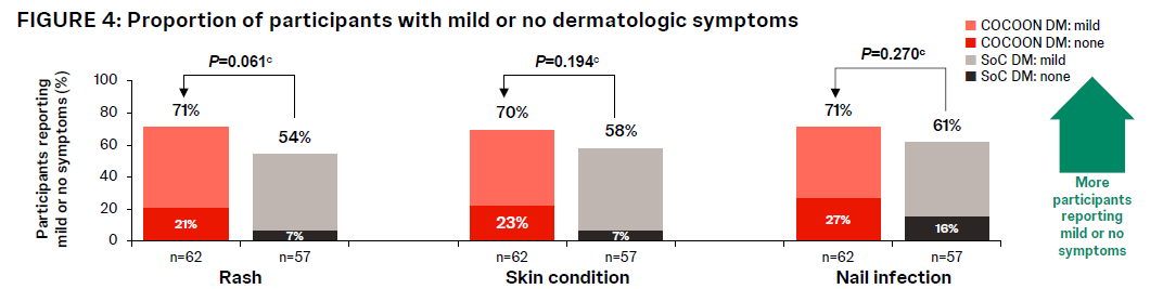 在此次公布的PROs结果中,观察到在C3D15,相较于标准方案,COCOON皮肤加强管理方案全面降低了皮肤AE对患者生活质量的影响,包括机体功能、情绪和体征状态。