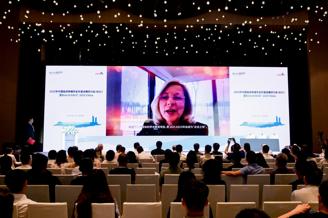 ASCO主席Robin Zon教授为本次大会发来了视频致辞。她对大会的举办表示热烈祝贺,并强调了ASCO与CSCO之间长期的合作关系。她提到,ASCO年会的主题“知识驱动,付诸行动”与本次大会的主题不谋而合。她指出,ASCO年会汇聚了全球各地的专家学者,共同探讨肿瘤学的最新进展,而Best of ASCO®2025 China则将这些重要的研究成果和专家见解直接带到中国,旨在帮助与会者深入了解肿瘤学研究的最新进展,并将其应用于日常临床实践中。她希望与会者能够通过本次大会,感受到ASCO年会的热烈氛围,并将所学应用于全球“以患者为中心”的肿瘤学临床实践中。