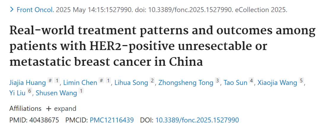 王树森教授团队最新研究成果:探讨中国晚期乳腺癌的抗HER2治疗模式,寻找临床治疗的未竞之需