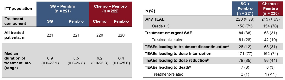 从ASCENT-04研究的安全性数据来看,SG联合免疫治疗并没有增加毒副作用,相反显示出相较于化疗组更好的治疗耐受性,表明该联合治疗方案的安全性是可控的。