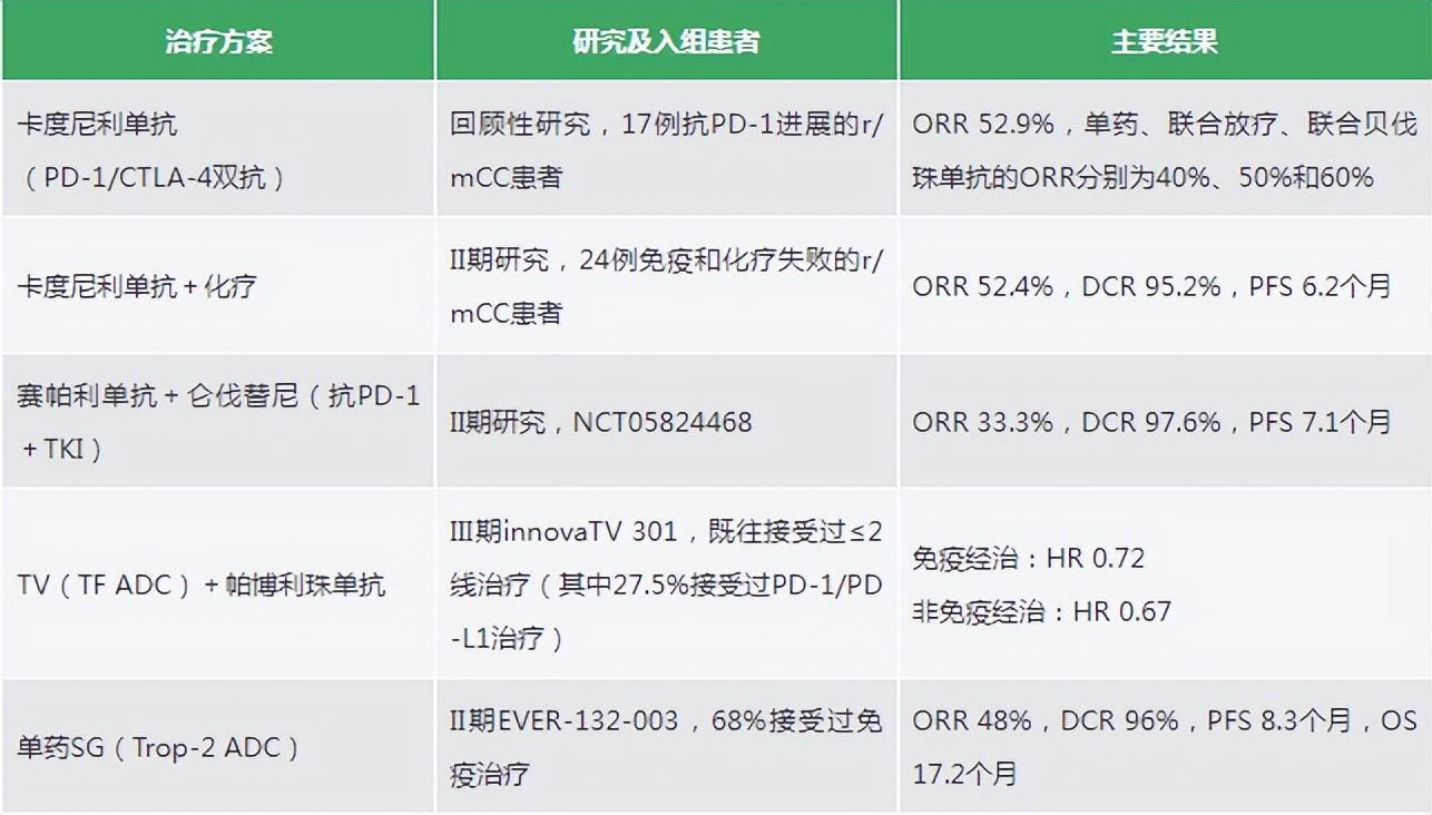 表1.已报道ADC治疗r/mCC的临床研究(非头对头比较,请谨慎解读)