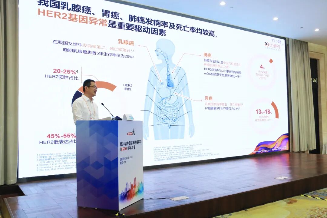 叶教授首先介绍了我国乳腺癌、胃癌及肺癌的发病与死亡现状,指出HER2基因异常是这三种实体瘤的重要驱动因素。然而,既往针对HER2异常表达患者的治疗效果仍不理想,亟需探索新的治疗策略。