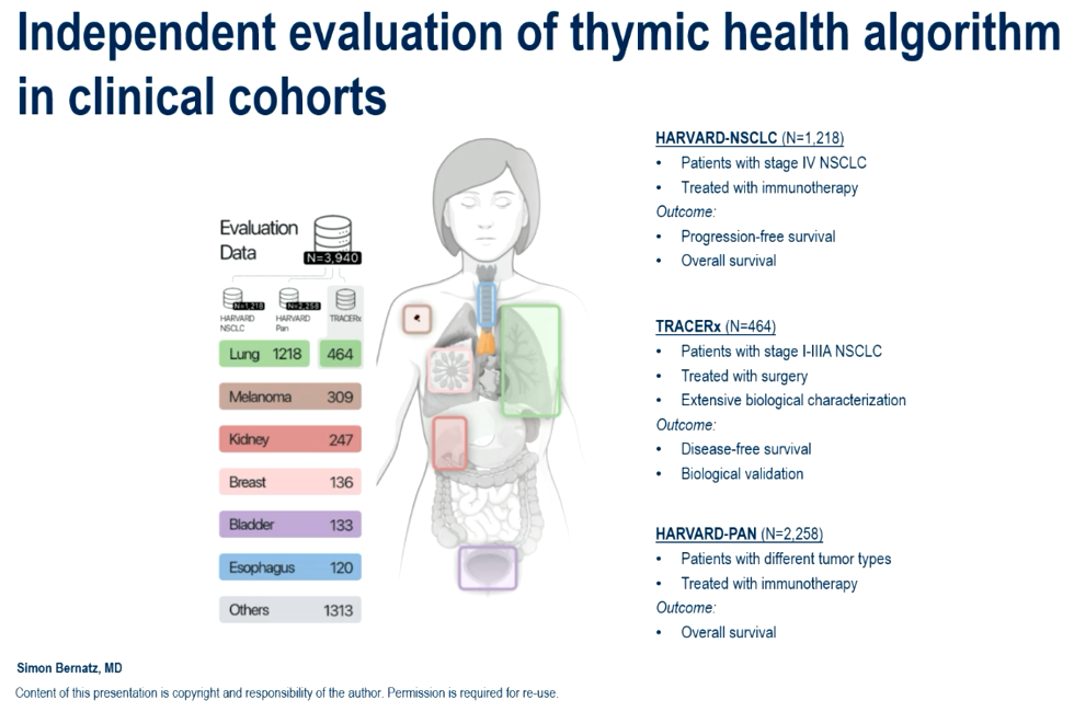 ☆使用包含2258名接受免疫治疗患者的HARVARD-PAN队列进行的泛癌种分析证实,在黑色素瘤、乳腺癌和肾癌中,胸腺健康状况与患者生存期之间存在正相关(p≤0.020)。