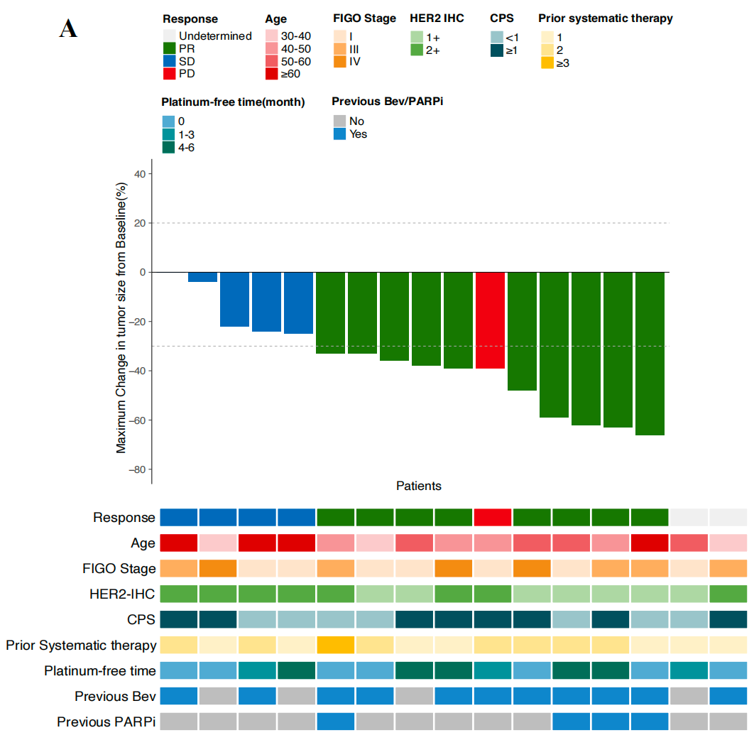 1.免疫活性高、属于“热肿瘤”:近年来的基础研究和我们中心的临床观察均提示,OCCC对免疫治疗反应良好,为联合卡度尼利单抗(免疫检查点抑制剂)提供了理论支撑。