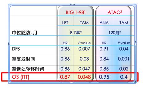 BIG 1-98和ATAC研究:疗效存在潜在差异
