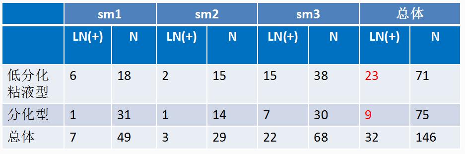 发现低分化粘液型胃癌患者淋巴结转移的可能性较分化型腺癌者高。该研究提示我们目前CT、EUS的术前分期远低于实际病理分期,尚需要更好的手段来解决这一难题,功能成像如PET/CT、PET/MRI、MRI-DWI等的引入是否能解决这一难题尚有待于进一步探讨。另外,侵犯粘膜下层的低分化粘液型胃癌淋巴结转移的几率相对较高,此类病人进行ESD/EMR治疗要谨慎,术前要充分检查淋巴结的情况。