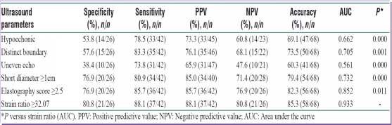 不同的超声参数对恶性淋巴结的诊断价值