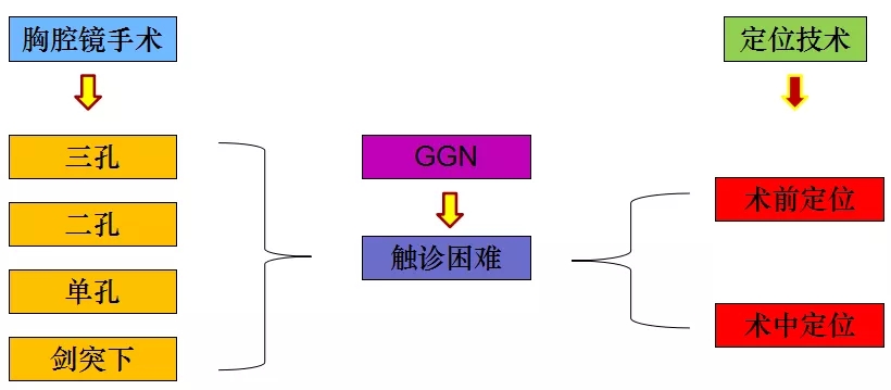 术中定位技术包括术中超声/CT及术中气管镜,但这一技术需要设备投入及多学科配合,存在COPD等基础疾病的患者也不适宜术中定位。