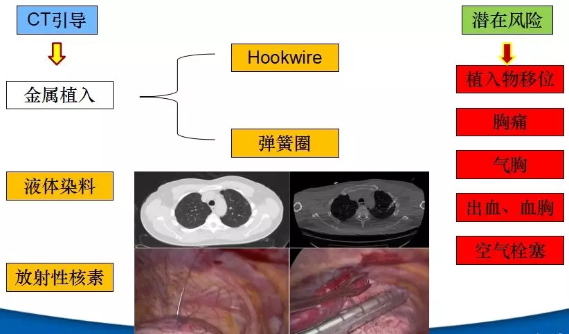 CT引导下的经皮穿刺定位技术包括金属植入、液体染料和放射性核素等,每种方法均有其优缺点。