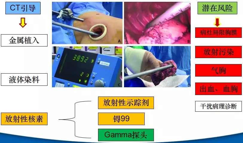 放射性核素主要通过放射性示踪剂、锝99和Gamma探头进行辅助病灶定位,这一方法存在放射性污染、气胸、出血及干扰病理诊断等潜在风险。
