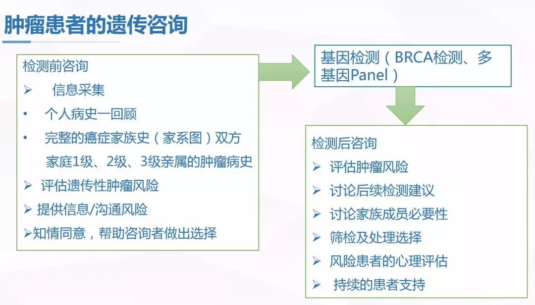 重庆大学附属肿瘤医院妇科肿瘤中心于2017年8月正式开展肿瘤遗传咨询门诊,咨询范围包括卵巢癌、子宫内膜癌、结直肠癌家族遗传性乳腺癌。遗传咨询的内容如下: