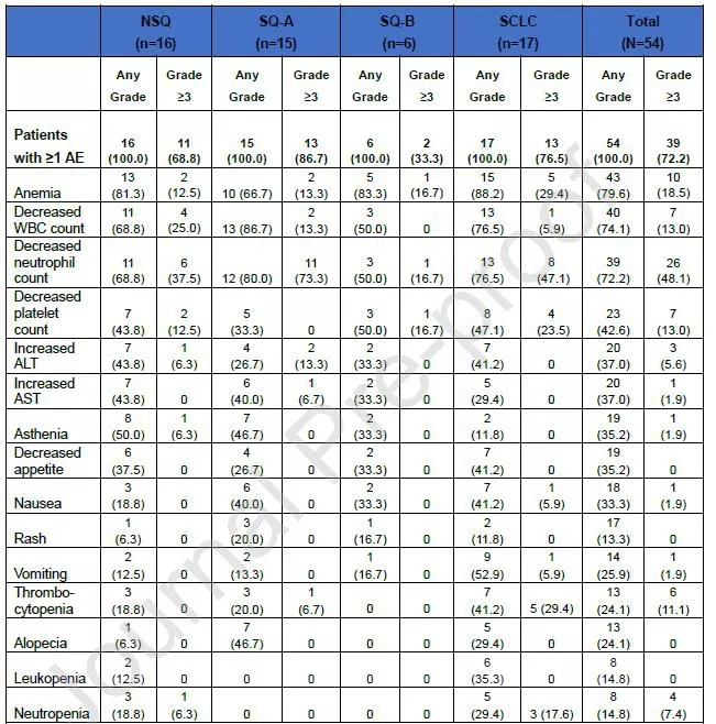 安全性:全组的3度及以上不良反应发生率为72.2%,队列1/2/3/4的3度及以上不良反应发生率分别为68.8%、86.7%、33.3%和76.5%。