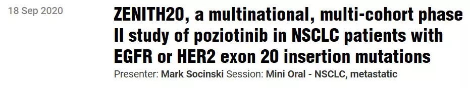 前言:2020年ESMO年会公布的肺癌领域LBA、Oral及Mini Oral等研究接近30项。本期微信聚焦2020 ESMO报道的EGFR 20外显子插入突变的晚期非小细胞肺癌TKI靶向治疗进展。