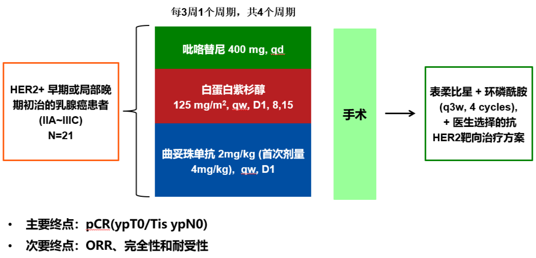 吡咯替尼联合白蛋白紫杉醇和曲妥珠单抗新辅助治疗HER2阳性早期或局部晚期乳腺癌II期研究