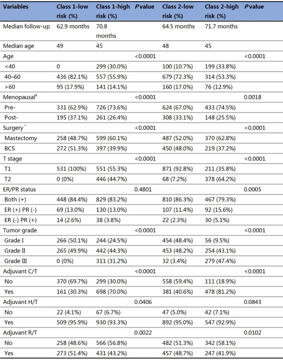 Abbreviation: LVI, lymphovascular invasion; C/T, chemotherapy; H/T, hormonal therapy, R/T, radiotherapy. *: 2 missing values. #: 15 missing values.