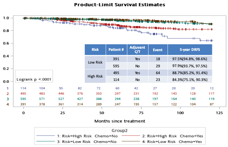 图3.标准1定义患者的术后5年DRFS(化疗vs无化疗)