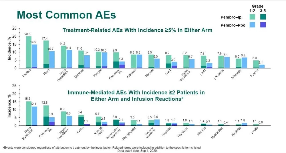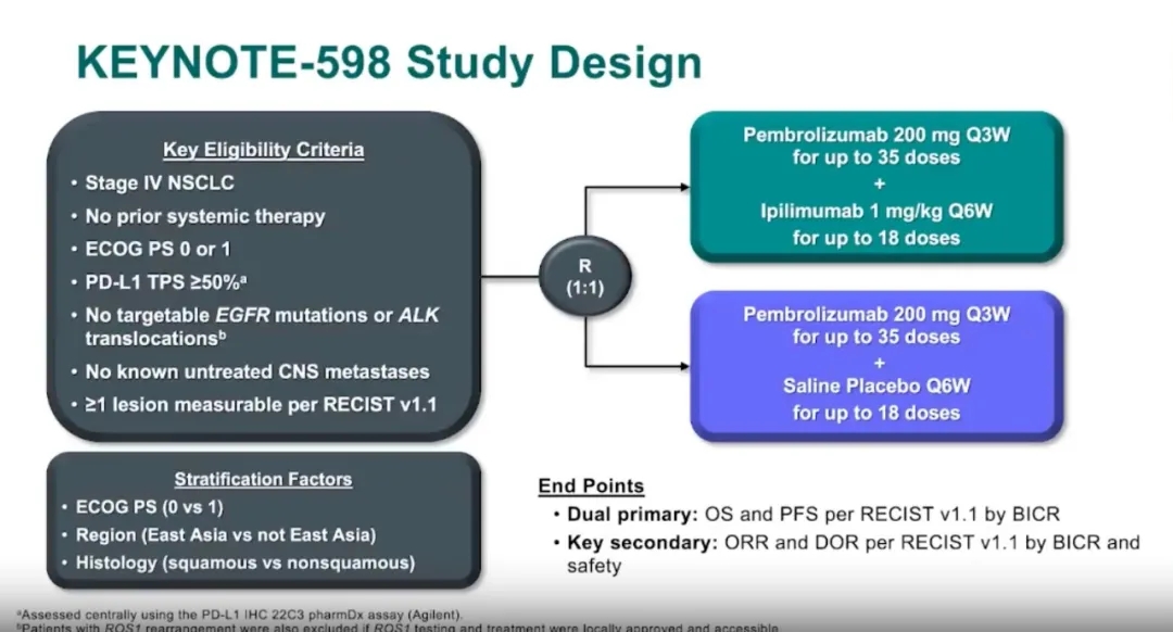 4.Pembrolizumab Plus Ipilimumab vs Pembrolizumab Plus Placebo as 1L Therapy for Metastatic NSCLC of PD-L1 TPS ≥50%: KEYNOTE-598. Presented at: 2020 World Conference on Lung Cancer Singapore. January 28-31, 2021.PS01.09.
