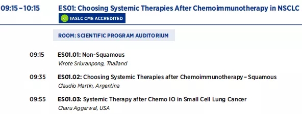 随着越来越多的免疫疗法进入肺癌一线治疗,免疫化疗(chemoimmunotherapy)一线治疗耐药后,二线治疗的选项不足。在第21届世界肺癌大会(WCLC)的教育专场——ES01肺癌免疫化疗后的系统疗法,三位国际学者解读了非鳞状非小细胞肺癌(NSCLC)、鳞状细胞癌(SCC)和小细胞肺癌(SCLC)患者的二线治疗新进展。