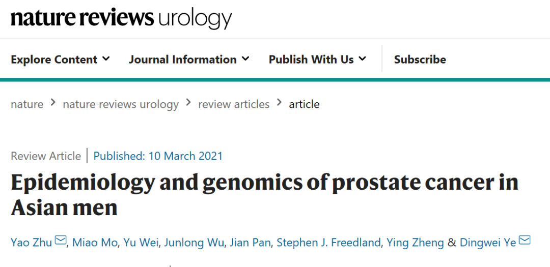 复旦肿瘤团队在Nature子刊发表综述,总结亚洲前列腺癌的流行病学和基因组特征
