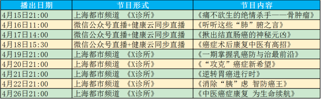 附《X诊所》2021年肿瘤防治宣传周特别策划节目表(节目实际播出时间可能因具体情况而调整):