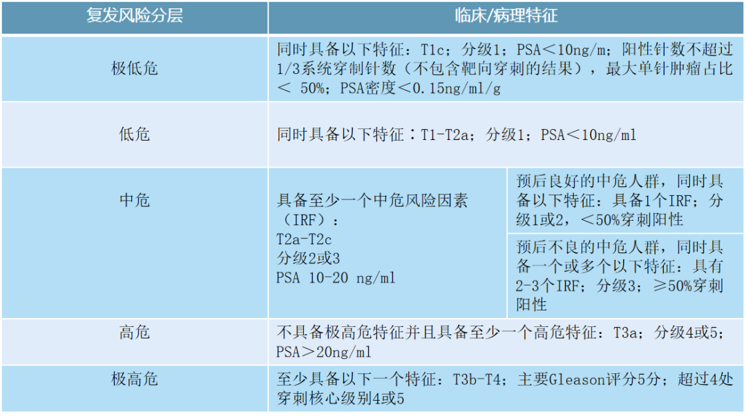 关于局限性前列腺癌的危险分层,新版CSCO PC指南同样划分为极低危、低危、中危、高危、极高危5个层级,并对极低危、低危、部分中危患者的治疗做出调整。