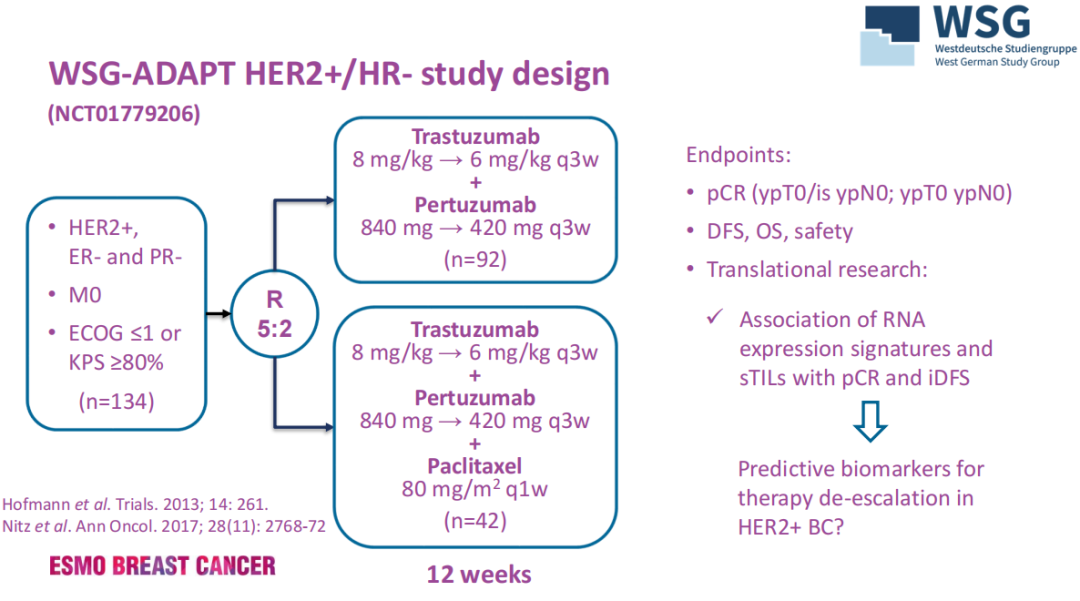 WSG-ADAPT HER2+/HR-研究中经12周新辅助双靶+/-化疗后RNA表达特征与肿瘤浸润淋巴细胞(TILs)对病理完全缓解(pCR)和生存(iDFS)的影响