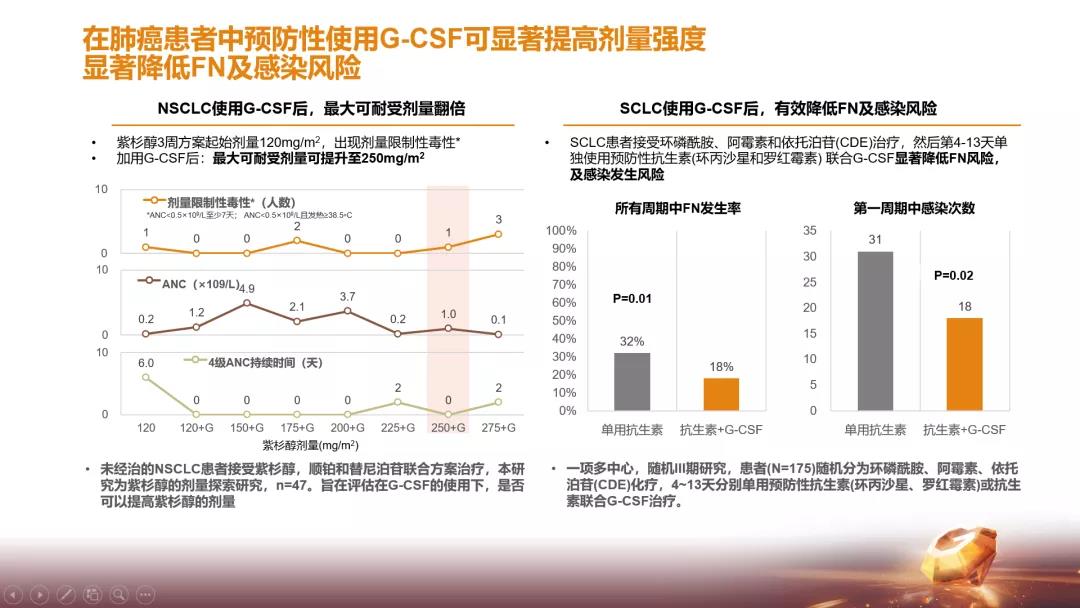 预防性应用G-CSF存在明确获益:降低FN发生率及感染死亡率,维持化疗剂量强度