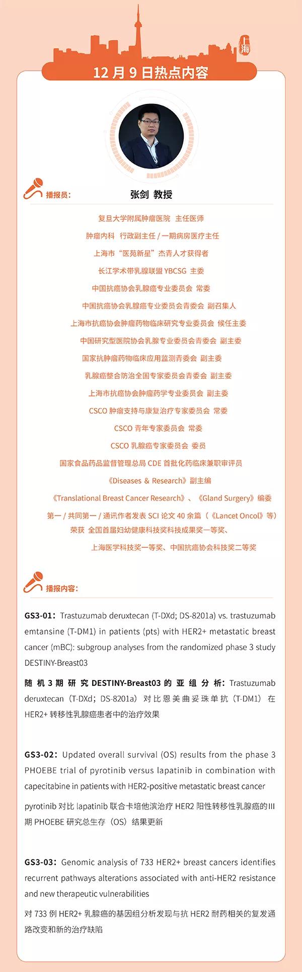 第44届美国圣安东尼奥乳腺癌研讨会(SABCS 2021)于当地时间12月7~10日以虚拟会议的形式召开,SABCS作为乳腺癌领域规模最大,最具影响力的国际性会议,多项重磅研究结果在会上进行了公布。为向大家及时播报大会每日进展,“SABCS 五分钟”特别栏目再度回归。本期,复旦大学附属肿瘤医院张剑教授将为您播报大会第三天(12月9日)的三项热点内容,聚焦于HER2阳性晚期乳腺癌的系统治疗。