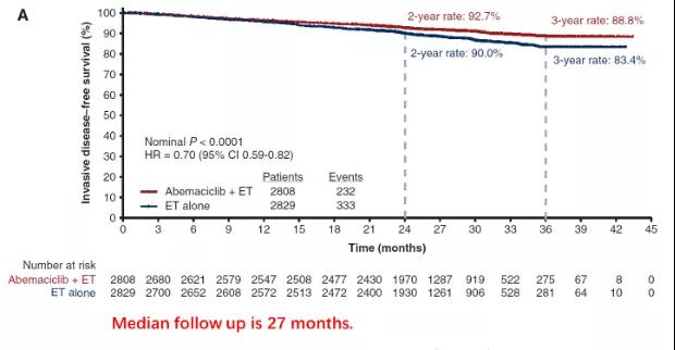 图2、MonarchE中位随访27个月iDFS