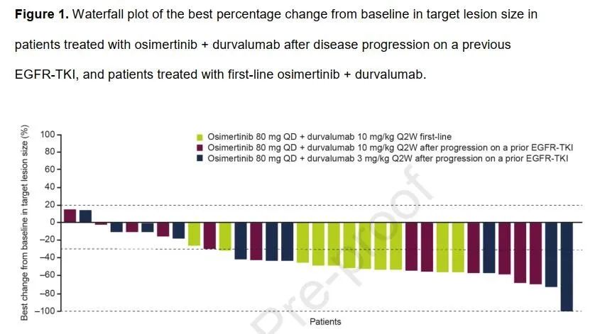 研究纳入年龄≥18周岁且携带EGFR敏感突变的患者,患者PS评分0-1分,队列A纳入TKI类药物治疗进展的患者,队列B纳入初治的患者。队列A中患者接受80 mg,口服,每日一次的奥希替尼治疗联合度伐利尤单抗3 mg/kg或10 mg/kg,每两周治疗一次。队列B纳入初治患者,接受奥希替尼80 mg,口服,每日一次联合度伐利尤单抗10 mg/kg,每两周一次的治疗。但是,由于队列B的患者出现的间质性肺疾病超过预期,该队列于2015年9月30日被永久性关闭。本研究主要研究终点为安全性和耐受性,次要研究终点为两药联合的抗肿瘤活性,包括ORR、PFS。