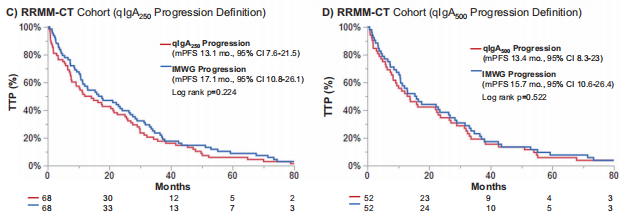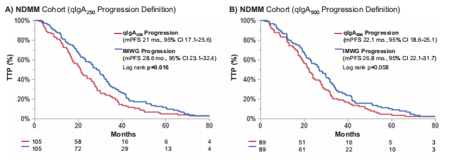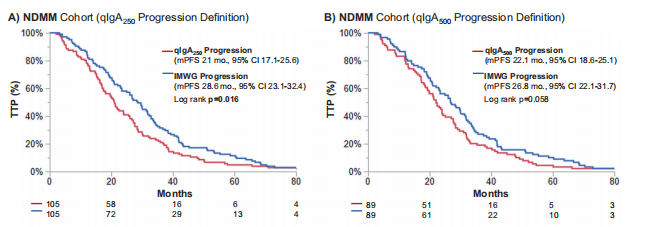 在无进展生存(PFS)预估中的比较: IMWG标准(即MCP) vs qIgA标准