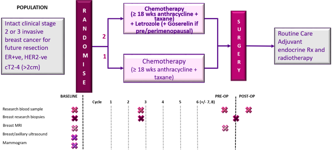 2、Randomized trial of neoadjuvant chemotherapy with or without concurrent aromatase inhibitor therapy to downstage ER+breast cancer:Breast Cancer Trials group ANZ 1401 ELIMINATE trial.2022 ESMO BC Abs-91MO