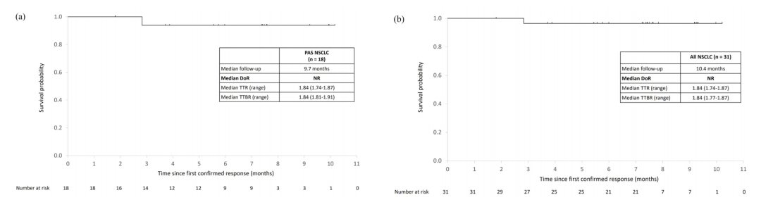 △图3.PAS(a)和所有NSCLC患者(b)的缓解持续时间Kaplan–Meier估计曲线