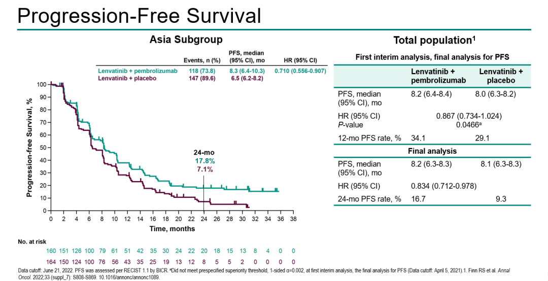 2022年9月的ESMO大会公布了LEAP-002研究全人群的主要研究结果,该结果未能达到预设阈值,在当时引起广泛关注。随着信息的陆续披露,不难看出,LEAP-002研究仅仅是“失利”,并未“失败”,从此次亚洲人群的分析结果中同样印证了这一点。