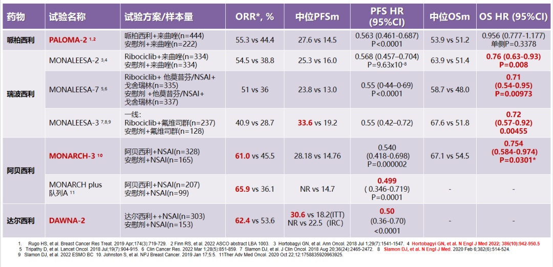 一线CDK4/6i+ET显著延长HR+晚期乳腺癌PFS,OS延长逐渐明晰。
