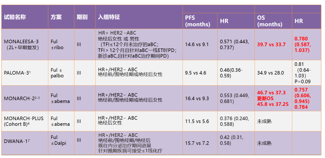CDK4/6抑制剂联合氟维司群的二线治疗PFS显著获益,OS延长明晰。