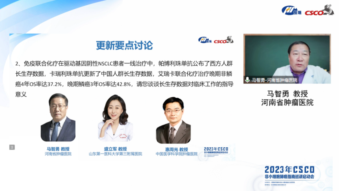 2023年5月24日,由中国临床肿瘤学会(CSCO)非小细胞肺癌专家委员会主办、江苏恒瑞医药协办的“2023年CSCO非小细胞肺癌指南巡讲启动会”成功举办,开启了2023年中国非小细胞肺癌(NSCLC)领域规范化诊疗的新征程。弦歌不辍,随着业内专家的巡讲之声,《2023CSCO非小细胞肺癌诊疗指南》(以下简称2023CSCO指南)的一系列重要更新及其背后的循证医学依据将深入到不同层级的医疗机构,帮助广大患者获得规范化、同质化的诊疗服务和最大化的生存获益。