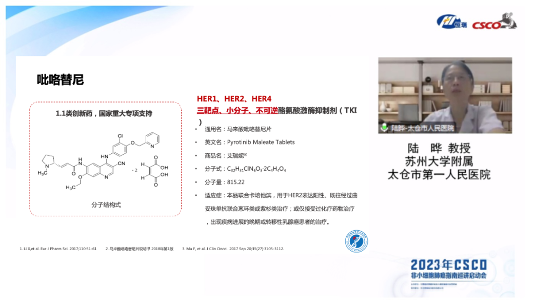 点评环节中,南昌大学第二附属医院刘安文教授、空军军医大学唐都医院闵婕教授、浙江大学医学院附属第一医院沈毅弘教授、广西医科大学附属肿瘤医院于起涛教授和中国医科大学附属第一医院赵明芳教授分享了真知灼见。专家谈到,吡咯替尼可靶向HER1/2/4三靶点,能够全面阻断HER家族同/异源二聚体下游通路,且与位点不可逆结合,这些药学优势为其强效抗肿瘤奠定了内在基础;从本例患者治疗中充分体现吡咯替尼的优异疗效,患者对阿法替尼耐药后,吡咯替尼有效“接力”,并实现了超长PFS,如此高龄患者能够坚持长期用药也反映了吡咯替尼良好的安全性和耐受性。