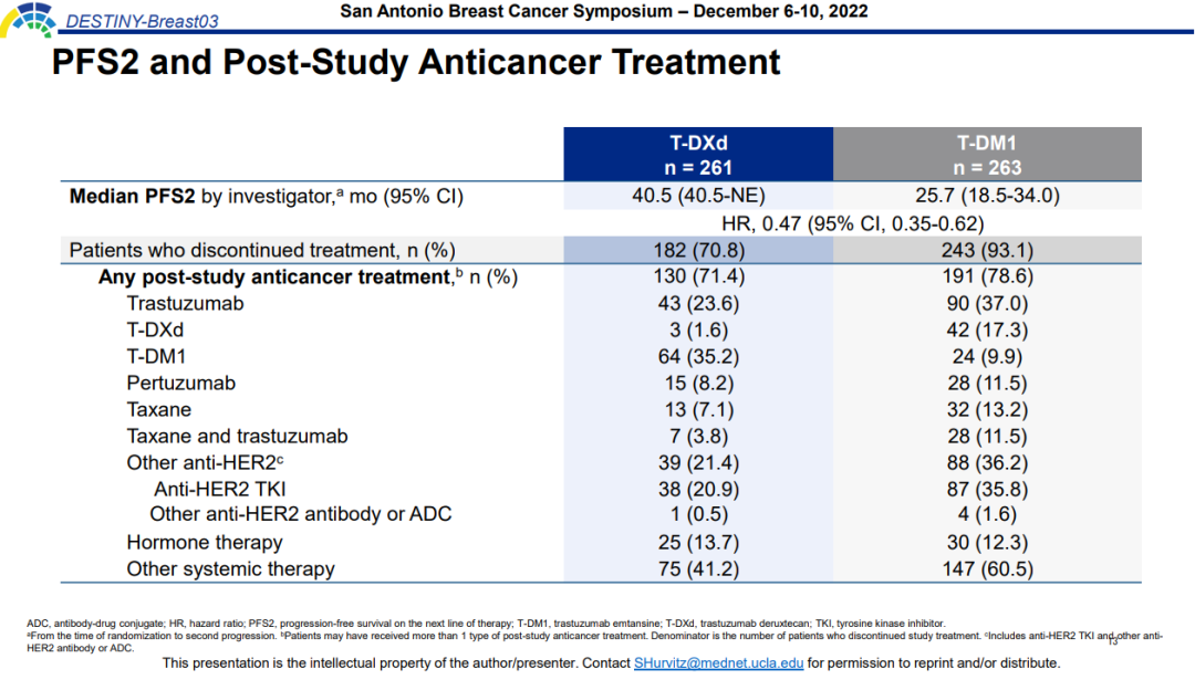 图3.DESTINY-Breast 03研究PFS2结果及后线治疗方案