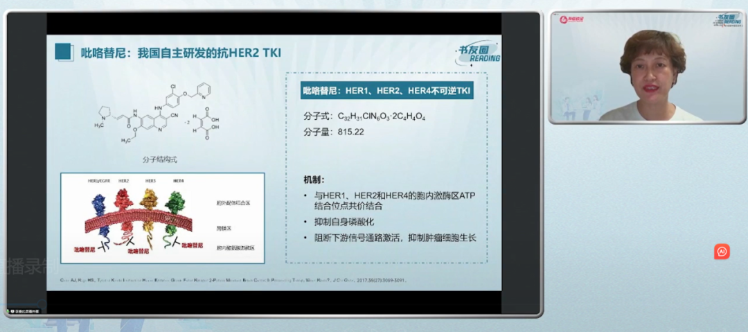 李曼教授在讲课中提到,吡咯替尼是我国自主研发的抗HER2 TKI,其能与HER1、HER2和HER4的胞内激酶区ATP结合位点共价结合,抑制自身磷酸化,阻断下游信号通路激活,抑制肿瘤细胞生长。PHENIX和PHOEBE研究结果的披露使吡咯替尼成为HER2阳性晚期二线标准治疗方案,PHILA研究让我们看到了吡咯替尼在一线治疗中的获益,基于PHEDRA研究,吡咯替尼实现晚期到早期的突破。