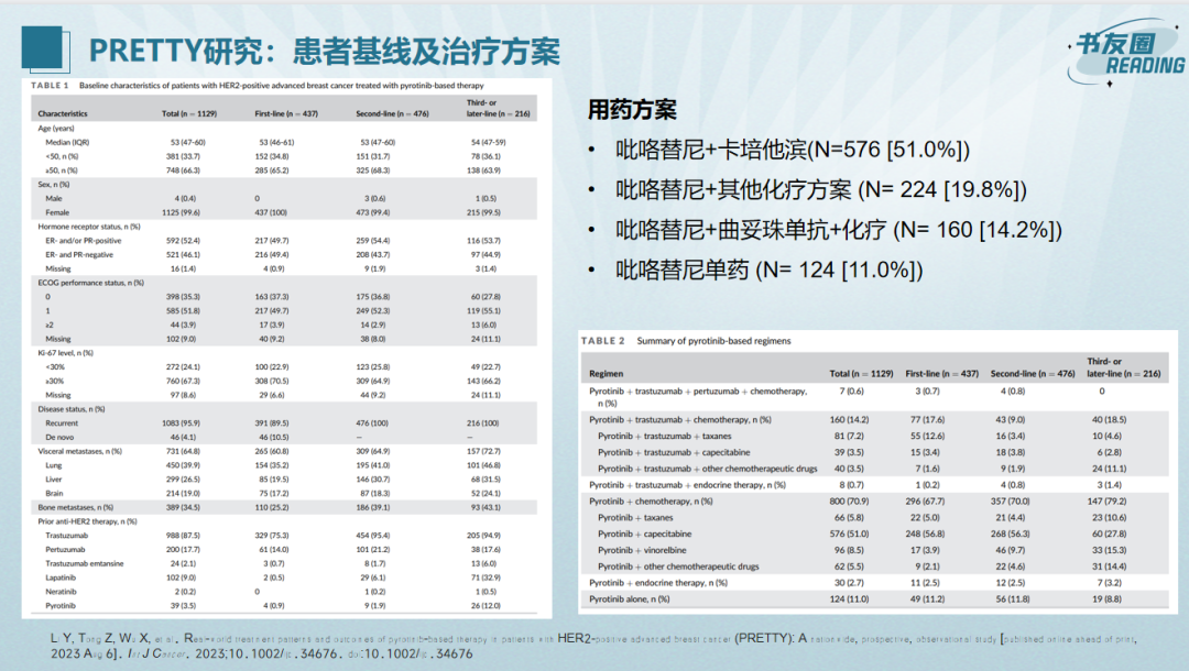 吡咯替尼做为我国原研的小分子TKI药物,在HER2阳性乳腺癌者治疗过程中发挥了重要作用,其相关研究也进展不断,然而其在真实世界中的疗效和安全性还欠缺数据。本期书友圈,李曼教授将为我们介绍徐兵河院士领衔开展的首个吡咯替尼的全国、前瞻性、观察性真实世界临床研究(PRETTY),葛睿教授将为我们介绍评估吡咯替尼联合来曲唑一线治疗HR+/HER2+MBC患者的疗效及安全性的PLEHERM研究。