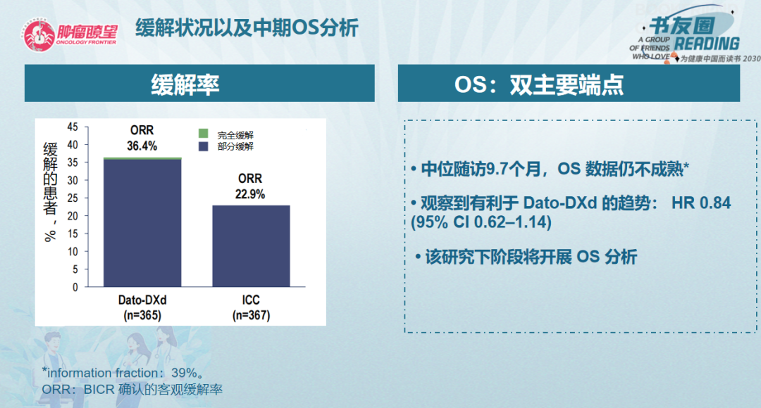 Dato-DXd组和ICC组的ORR分别为36.4%和22.9%;OS数据尚未成熟,但已观察到Dato-DXd组的获益趋势(HR 0.84,95%CI:0.62~1.14)。