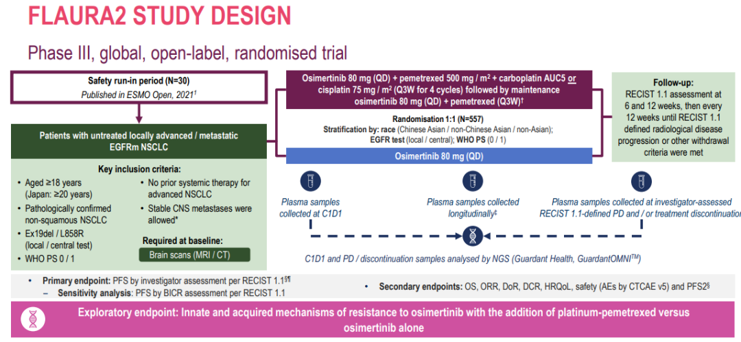 2. Lee CK, et al. Acquired mechanisms of resistance to first-line (1L) osimertinib with or without platinum-based chemotherapy (CT) in EGFR-mutated (EGFRm) advanced NSCLC: Preliminary data from FLAURA2. ESMO Asia Congress 2023, Abstract 514MO